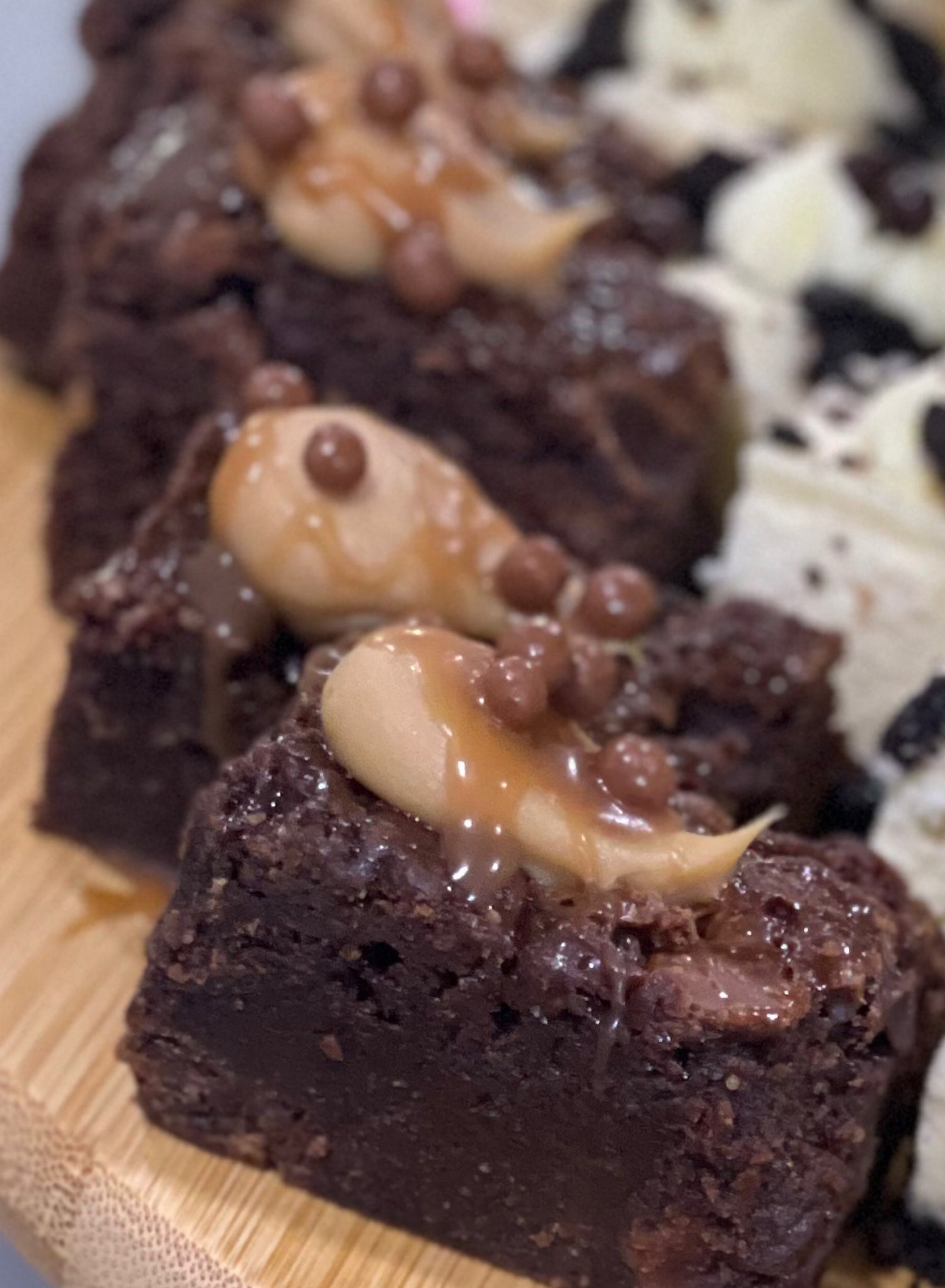 Classic double chocolate, Biscoff, salted caramel, raspberry, pecan/walnut or raspberry white chocolate blondie
