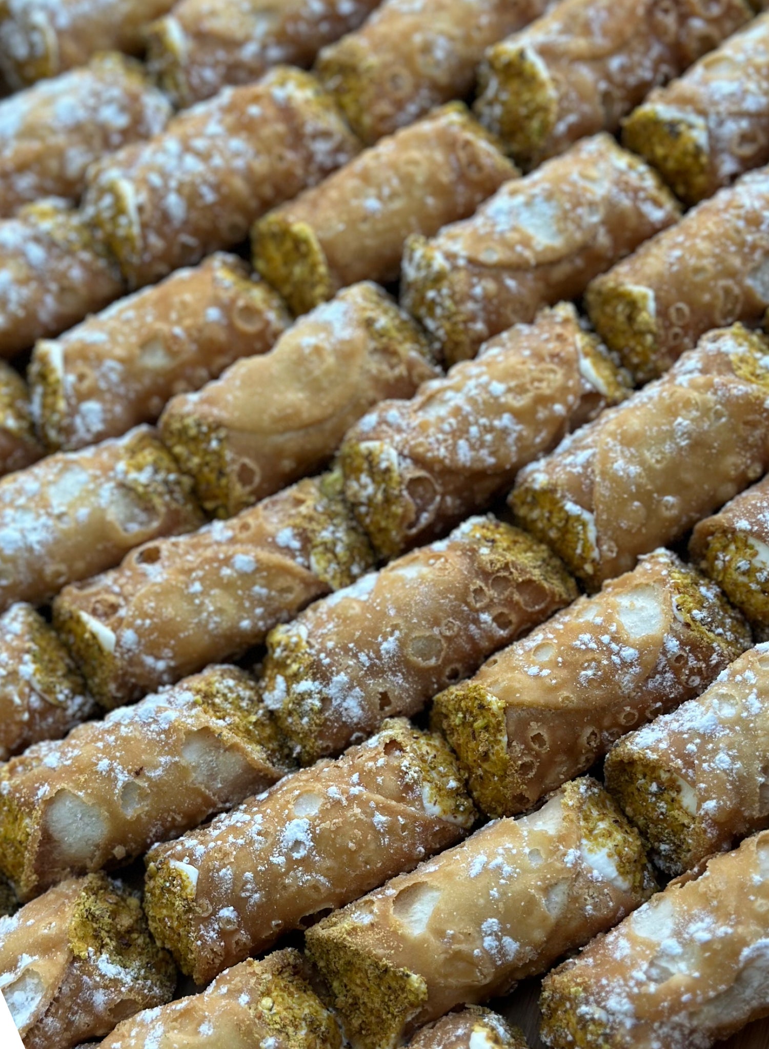 Ricotta and pistachio, chocolate and orange, vanilla custard, Biscoff, Oreo, chocolate or Nutella