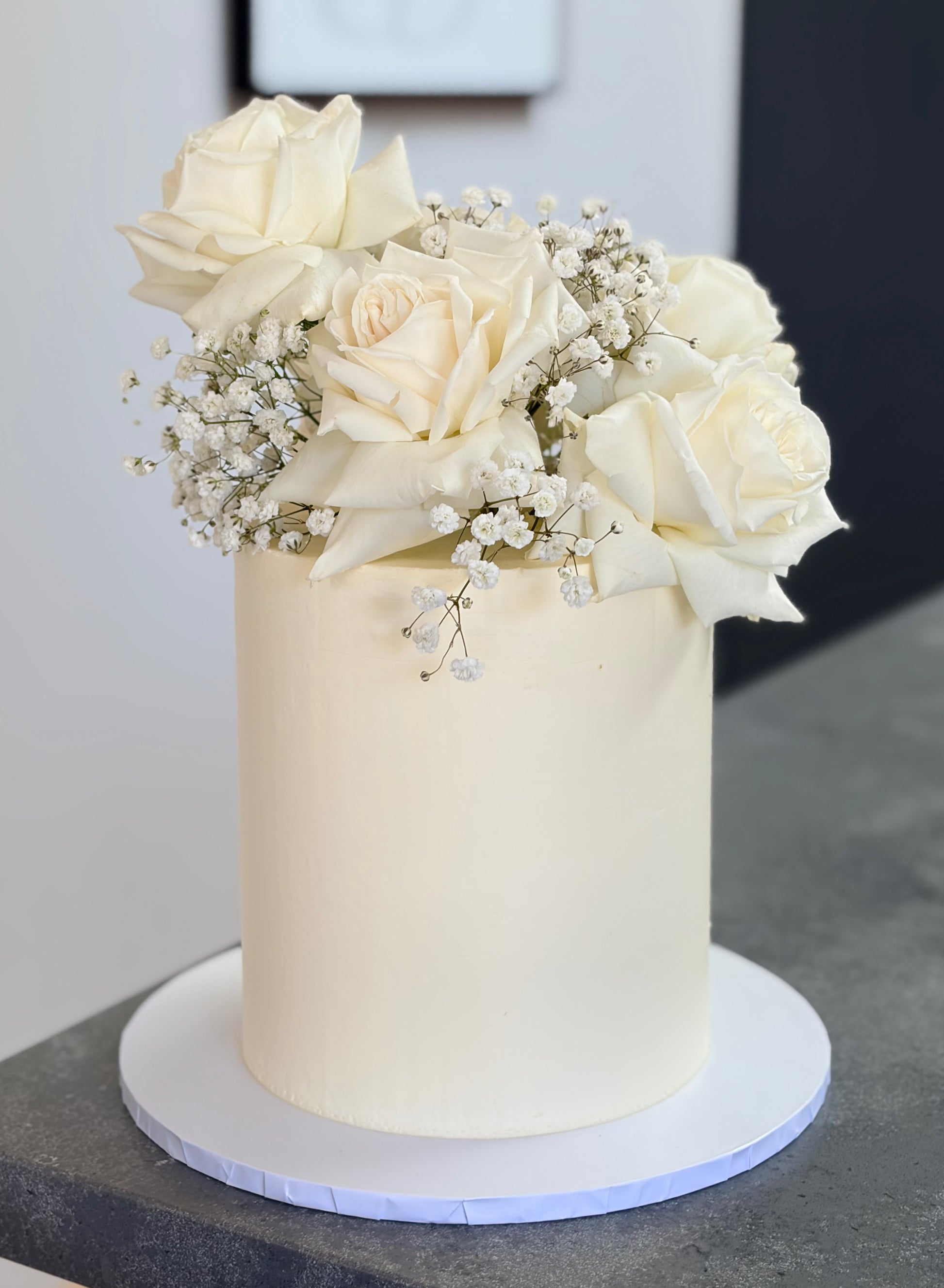 Your cake will be decorated with locally sourced seasonal fresh blooms